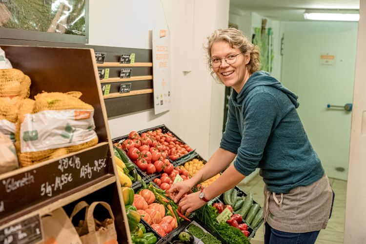 Simone Schmitz bewirtschaftet diesen vielseitigen Betrieb mit Hofladen und Lieferservice nach den Richtlinien des Demeter-Anbauverbands.