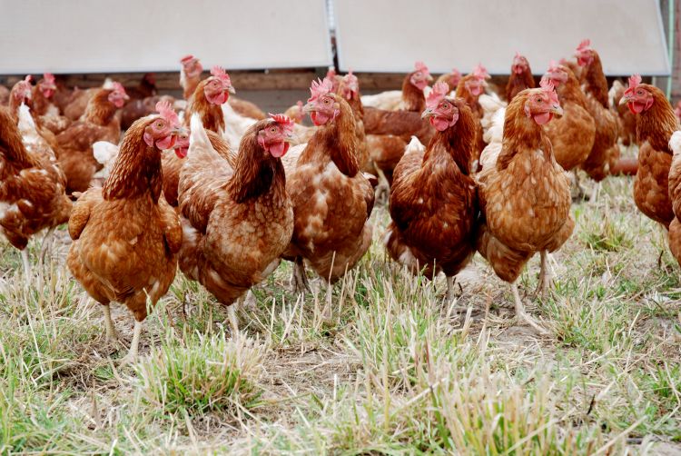 Die Kühe grasen auf den weiten Naturschutzflächen der Kendelniederung und leben im Winter im hellen Offenfrontstall. Die Hühner wandern in vier Mobilställen über die Gras- und Kleegrasflächen des Betriebes und finden einen Teil ihres Futters an immer neuen Stellen.
