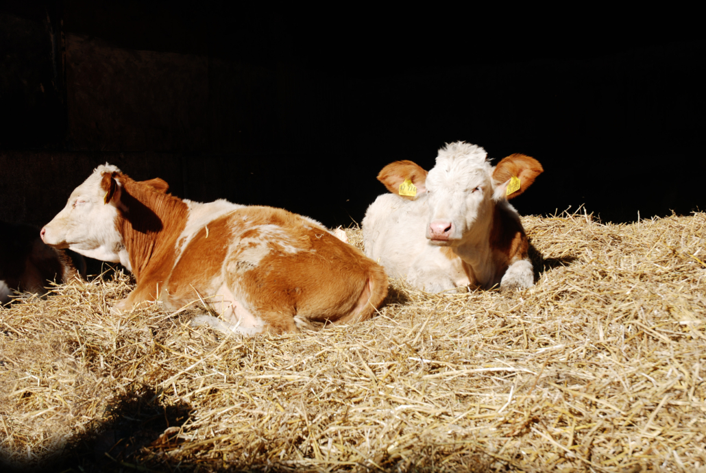 Das Futter für die Tiere stammt von den hofeigenen Äckern und Wiesen. Zusätzlich zum natürlichen Weidefutter kann sich jede Kuh »ihre« Ration Spezialfutter an einem computergesteuerten Futterstand abholen. Dank dieser Technik bekommen die Tiere stets die richtige Mischung der verschiedenen Futtermittel.