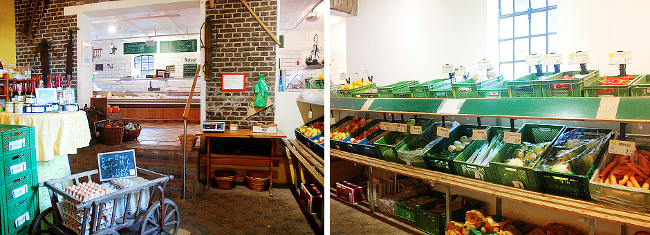 In der hofeigenen Fleischverarbeitung wird das Fleisch schonend, ohne Füllstoffe und Phosphat, zu einer breiten Palette von Wurst und Aufschnitt verarbeitet. Angeboten wird stets frisches Fleisch, Schweinefleisch wird von regionalen Bioland-Betrieben zugeliefert. Zudem gibt es im Hofladen ein breites Sortiment ausschließlich biologischer Produkte.
