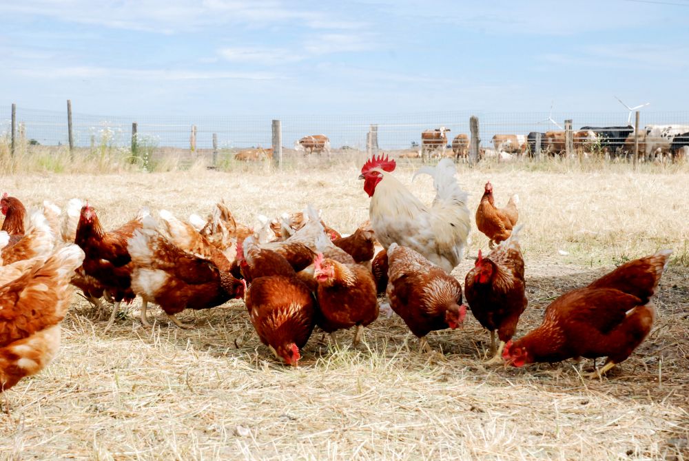 Der Schwerpunkt des Betriebes ist die Milchkuhhaltung, es leben 80 Kühe mit Nachzucht (ca. 40 Jungrinder) auf dem Hof und grasen tagsüber auf den nahe gelegenen, weitläufigen Weideflächen. Die 150 Hühner haben reichlich Auslauf zur Auslebung ihres natürlichen Verhaltens, die mobilen Hühnerställe werden regelmäßig versetzt, so bleiben die Grasnarben intakt und können sich schnell regenerieren, die Flächen werden zudem nicht mit Nährstoffen überfrachtet.
