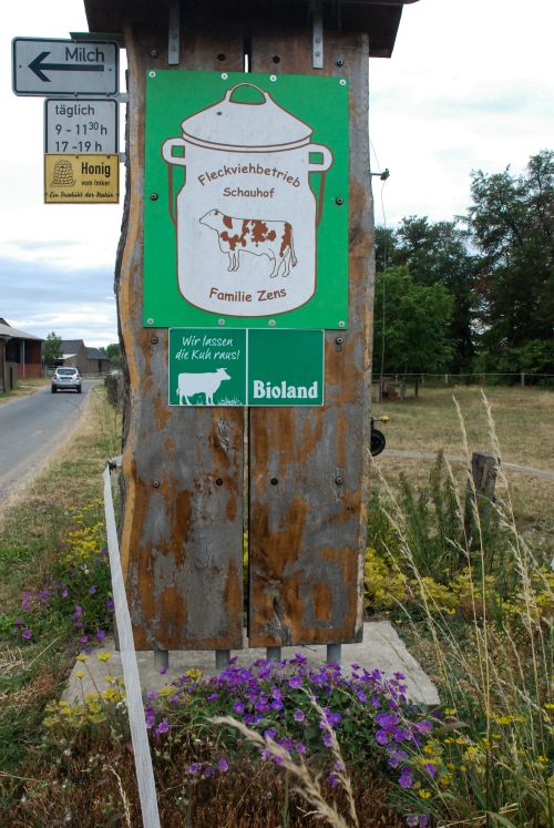 Hofeigene Produkte: Rohmilch, pasteurisierte Milch, Joghurt, Eier, Kartoffeln, vereinzelt Gemüse