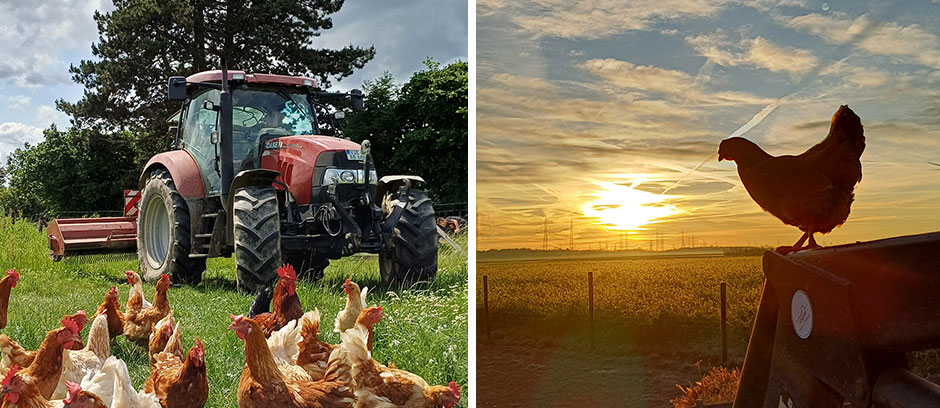 Von den Bioland-Richtlinien profitieren insbesondere auch die 150 Legehennen, die in einem Mobilstall am Hof gehalten werden.