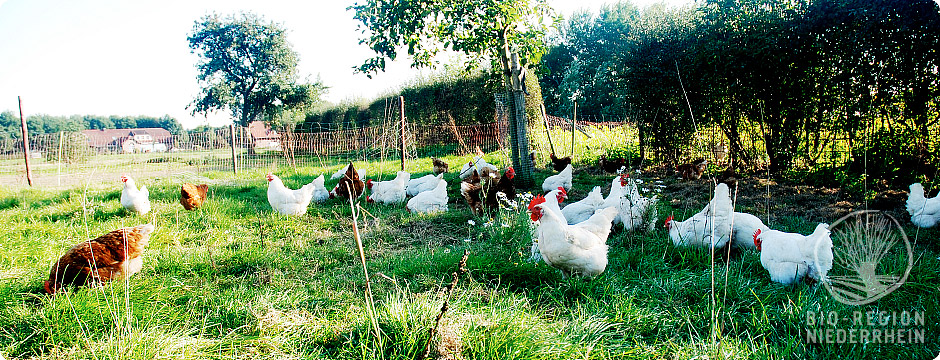 Inzwischen werden alle Speiseeier auf dem Geflügelhof von Zweinutzungshennen gelegt. Die Bruteier für die Hennen stammen ausschließlich von den Tieren der ökologischen Tierzucht, die ebenfalls auf dem Betrieb gehalten werden. Auch die Aufzucht der Legehennen und deren Brüder findet auf dem Geflügelhof statt, ebenso die Schlachtung der Hähne und Suppenhennen.