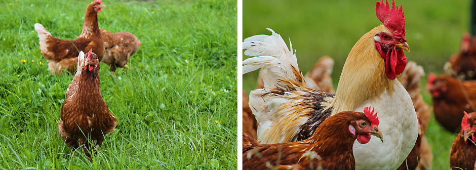 Der Legehennenbereich, mit über 5.000 Legehennen, ist ein weiteres Standbein des Betriebes. Zudem werden 40 Mutterkühe der Rasse Fleischfleckvieh gehalten. Im Sommer leben diese auf den umliegenden Wiesen – im Winter im großen Stall, wo sie u.a. frisches Kleegras fressen, das zur Sommerzeit als Heu oder Silage geerntet wird