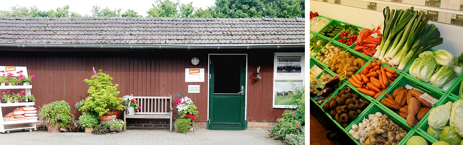 Auf dem Acker wachsen – neben dem Futter für Kühe und Hühner – Kartoffeln, Brotroggen, Backweizen und Nackthafer. Die hofeigenen Produkte werden – ergänzt zu einem Naturkostvollsortiment – über den Hofladen und den hofeigenen Lieferservice vermarktet.