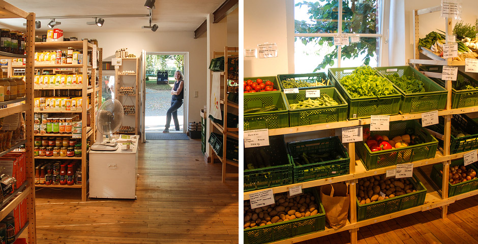 Auf dem Feingemüse-Acker und im Folientunnel gedeihen wechselnde Gemüsesorten, Kräuter, Salate und Tomaten. Das Gemüse wird erntefrisch auf Märkten in Winnekendonk und in Wesel sowie im Bio-Hofladen verkauft. Dort gibt es neben Eiern, Kartoffeln, Obst und Gemüse auch Bio-Fleisch aus eigener Erzeugung, Käse, - Milcherzeugnisse und Bio-Brot. Ein Naturkost-Trockensortiment mit über 500 Produkten ergänzt die breitgefächerte Auswahl.