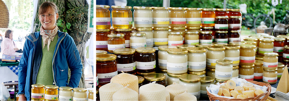 Neben der Arbeit in der Imkerei betreibt sie an zwei Tagen in der Woche (dienstags und freitags) einen Marktstand in Pulheim.