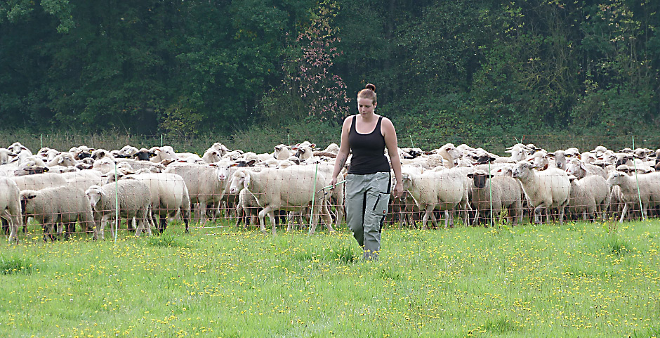 Mit seinen 600 Mutterschafen – aufgeteilt in drei Herden – betreibt er Koppelhaltung: Sind die Weiden abgegrast, wird der Zaun abgebaut und versetzt. Im Winter „wandert“ Koop über Naturschutzflächen sowie über Grünland- und Ackerflächen anderer Biobetriebe. Auf den Ackerflächen werden Winterzwischenfrüchte beweidet.