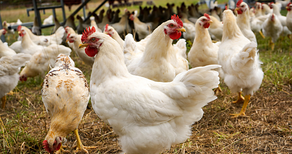 600 Legehennen und 400 Masthähnchen leben in mobilen Ställen. Im Wechsel zu den Masthähnchen werden auch Bruderhähne in einem der Mobilställe gehalten, ein Beitrag um das sinnlose Kükentöten einzudämmen.