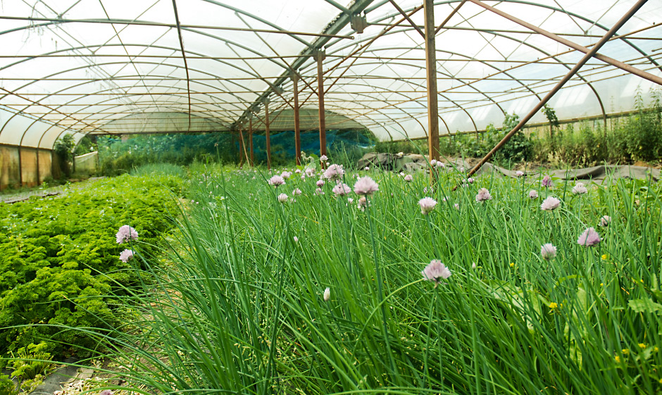 Auf 0,25 ha Acker und Gewächshäusern mit einer Fläche von 0,2 ha gedeihen verschiedene Feingemüsesorten wie Salate, Mangold, Spinat, Kohlrabi und Schnittkräuter. Im Herbst wird schwerpunktmäßig Feldsalat angebaut.